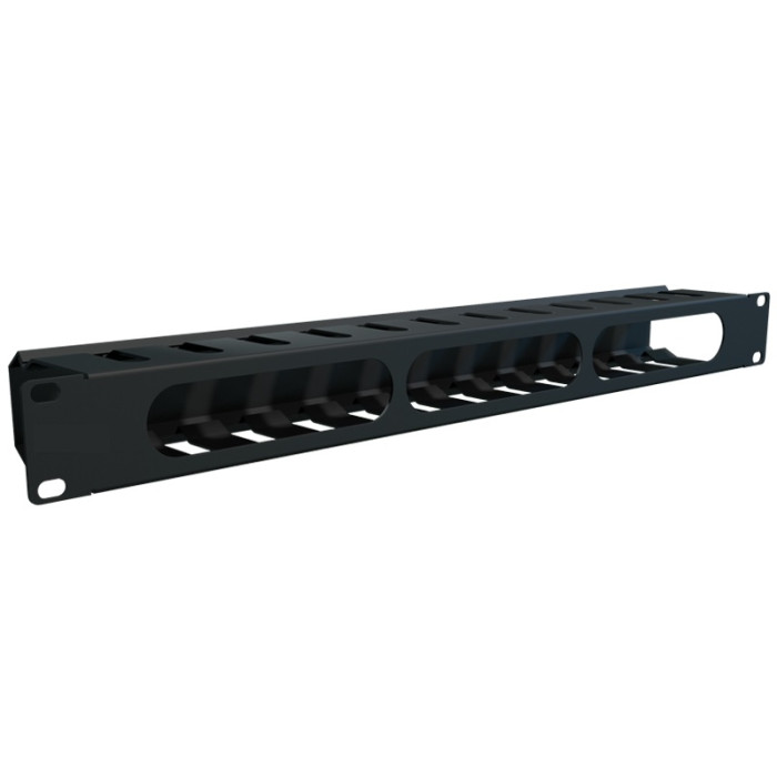 This organizer helps keep cables tidy and reduces clutter, thus facilitating maintenance and access to rack equipment. Made from durable materials, it is designed to withstand heavy use and has a robust construction that ensures a firm hold.