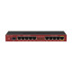 The RB2011iLS has 11 ports: Gigabit SFP cage and five Gigabit Ethernet ports that can be switched together providing affordable wirespeed Fiber-to-Copper converter, and additional five Fast Ethernet ports. Board can be powered by power jack or PoE. Note that SFP transceiver is NOT included. RB2011iLS supports any 1.25G SFP transceivers that is within the SFF Committee specifications for SFP Transceivers.