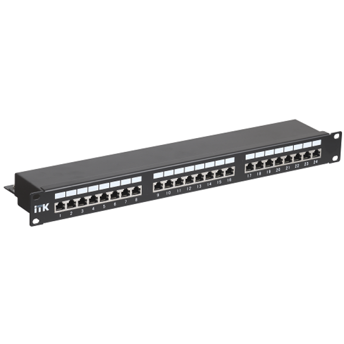 Depending on the mounting method, the scale of the cable system, the type of network, ITK manufactures patch panels for wall mounting or mounting in a 19-inch construct, by the number of ports: 12-, 24-, 25-, 48-, 50-, categories: 3 (telephone), 5E, 6, 6A, shielded and without protective shield.
