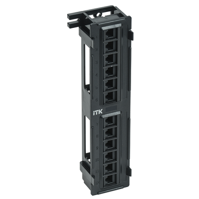 Depending on the mounting method, the scale of the cable system, the type of network, ITK manufactures patch panels for wall mounting or mounting in a 19-inch construct, by the number of ports: 12-, 24-, 25-, 48-, 50-, categories: 3 (telephone), 5E, 6, 6A, shielded and without protective shield.