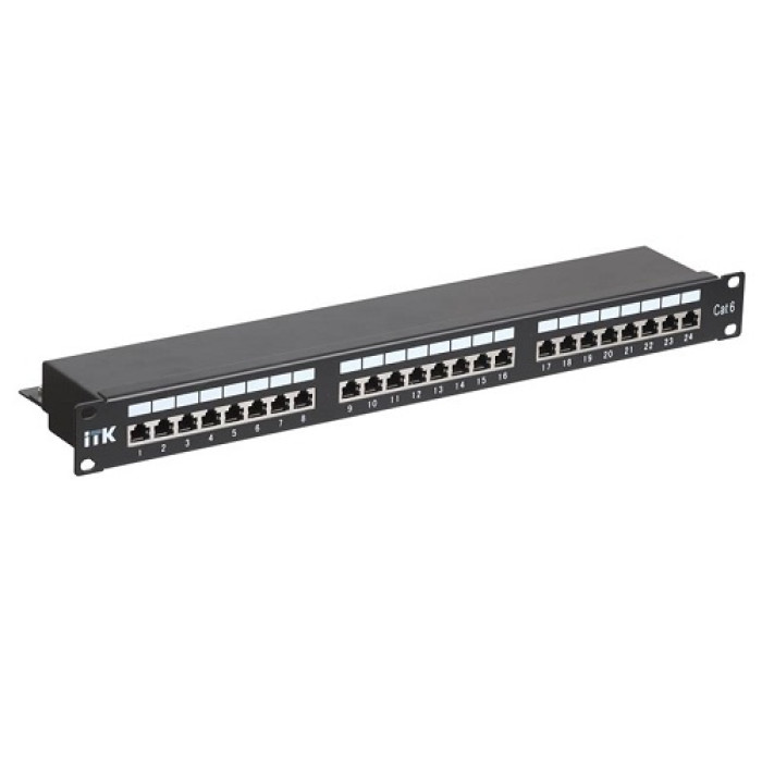 ITK 1U Cat.6 STP patch panel, 24 ports (Dual), with cable manager