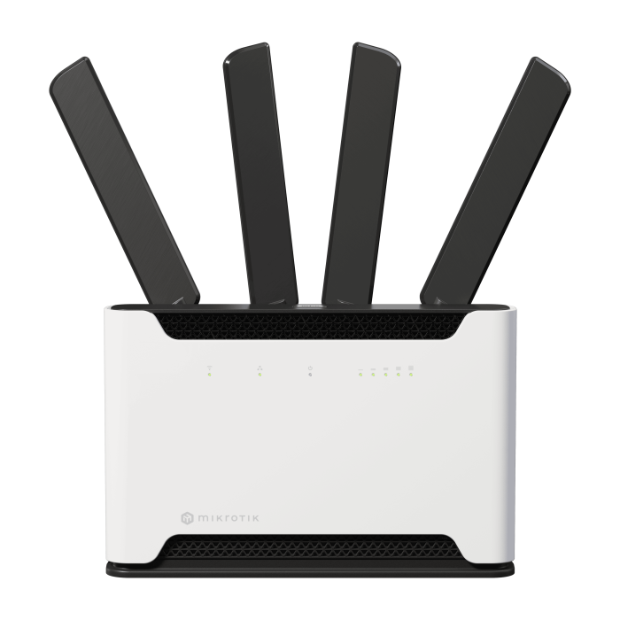 The MikroTik Chateau 5G ax Router is a high-performance networking device designed to deliver exceptional speed and connectivity for both home and office environments. Equipped with the latest 5G technology, this router provides lightning-fast internet access, crucial for streaming high-definition media, gaming, or handling multiple simultaneous connections with ease. It supports Wi-Fi 6 (802.11ax), ensuring improved network efficiency, extended range, and enhanced device capacity.
