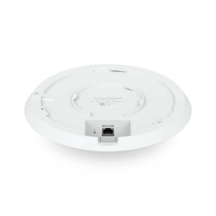 With 10 spatial streams (4×4 on 6 GHz, 4×4 on 5 GHz, 2×2 on 2.4 GHz) and combined speeds up to 10.2 Gbps (4.8 Gbps on 6 GHz BW160, 4.8 Gbps on 5 GHz BW160, 573.5 Mbps on 2.4 GHz), U6 Enterprise delivers ultra-fast WiFi connectivity for 600+ simultaneous clients over 140 m² (1,500 ft²) coverage. 6 GHz band with 4×4 MU-MIMO eliminates interference and provides maximum performance for WiFi 6E devices. Antenna Gain of 6 dBi on 6 GHz, 5.3 dBi on 5 GHz, and 3.2 dBi on 2.4 GHz, 2.5 GbE uplink, PoE+ power (22W max), -30 to 60°C operating temperature. Pro Mount included for ceiling or wall mounting, premium design Ø220 × 48 mm.