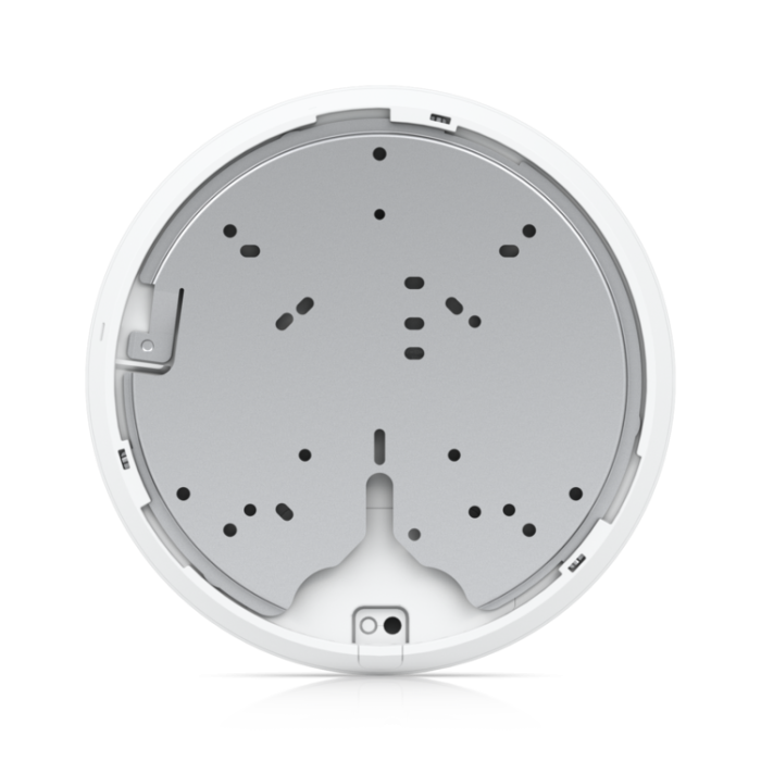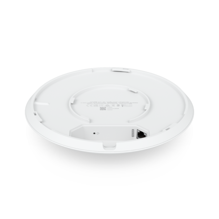 With 6 spatial streams (4×4 on 5 GHz, 2×2 on 2.4 GHz) and combined speeds up to 5.4 Gbps (4.8 Gbps on 5 GHz BW160, 573.5 Mbps on 2.4 GHz), U6 Pro delivers fast WiFi connectivity for 250+ simultaneous clients over 140 m² (1,500 ft²) coverage. IP54 weatherproof protection enables installation in semi-protected locations or high-humidity environments. Antenna Gain of 6 dBi on 5 GHz and 4 dBi on 2.4 GHz, GbE uplink, PoE power (13W max), -30 to 60°C operating temperature. Pro Mount included for ceiling or wall mounting, compact design Ø197 × 35 mm.