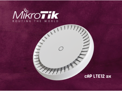 The MikroTik cAP LTE12 ax is an advanced Wi-Fi 6 access point with a 600 Mbps LTE CAT12 modem, ideal for business environments requiring fast and secure connectivity. With a 1.8 GHz quad-core processor and RouterOS v7, it offers enhanced security features (WPA3, Wireguard, IPsec), fast roaming, and PoE support for powering other devices. Ceiling mount ensures optimal coverage and protects the devi..