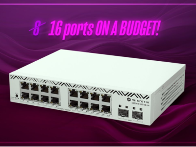 The first MikroTik high-power PoE++ (802.bt) switch – for easy and cost-effective powering of 4K security cameras, ad panel screens, or even industrial automation systems.Forget about countless power cables – create a cleaner space with PoE++!..