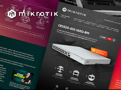 NEWSLETTER #119 | July 2024. In this newsletter: CRS520-4XS-16XQ-RM; CRS320-8P-8B-4S+RM; LtAP mini LTE kit (2024); G1483-0600WNB. Newsletter #119 from 2024 from MikroTik presents the latest innovations and updates on their products, including new network solutions, improved firmware, and advanced features. Discover how MikroTik technology can optimize the performance and security of your networks...