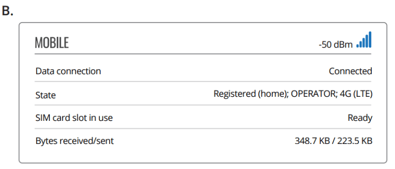 - After logging in, check the signal level indicated in the Mobile widget (image B)