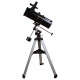 Levenhuk Skyline 120x1000 EQ is a Newtonian reflecting telescope. Its mirrors produce no chromatic aberration, which may be especially noticeable during observations of brighter objects with a refracting telescope. The long focal length of this telescope makes it the perfect choice for observations of planets, features of the lunar surface and binary stars. The large, 114-mm primary mirror gathers so much light (2.25 times more than its 76-mm counterpart) that this telescope produces very detailed views of bright deep-sky objects. Additionally – thanks to the capabilities of this telescope – you can even try your hand at astrophotography. The equatorial mount that comes with Levenhuk Skyline 120x1000 EQ makes this telescope even more practical and precise. Overall, this instrument will make a wonderful addition to the equipment of any amateur stargazer.