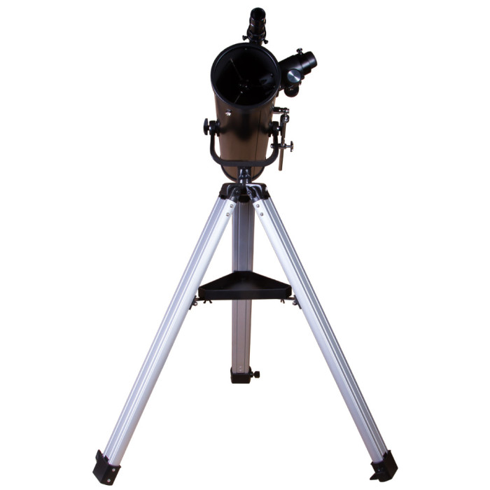 This telescope comes with an alt-azimuth mount, and it does not take much time for mastering. Levenhuk Skyline BASE 100S is operated as a classic spotting scope, by moving an optical tube to the left, to the right, up and down. A mount is fixed on a standard tripod made of aluminum and reliably installed even on rough surfaces. There is an accessory tray. The tripod features adjustable legs.