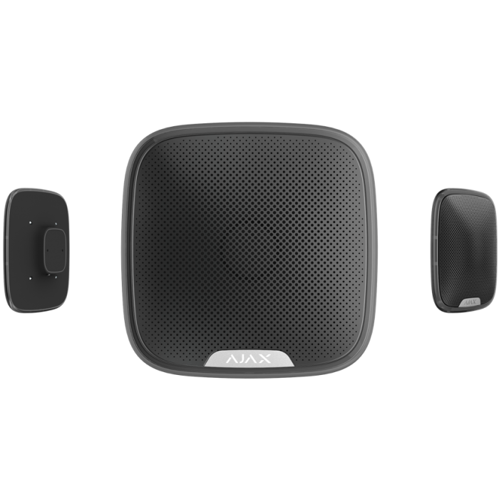 Wireless siren with LED frame and piezoelectric buzzer. The device is designed for both outdoor and indoor installation.
